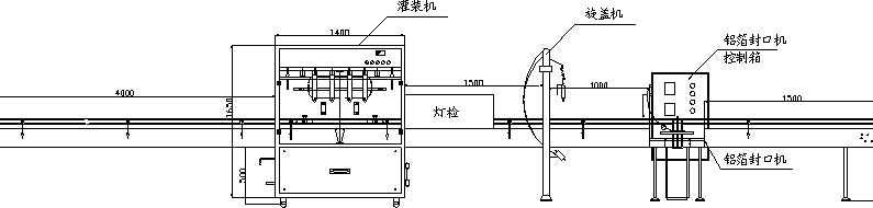 | 方案設計二:洗瓶機+灌裝機+封罐機+貼標機 |