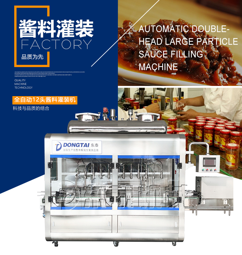 A、顆粒漿狀辣椒醬灌裝機是本東泰機械采用先進灌裝機技術的基礎上,進行改造和創新設計的產品,其結構簡單、精確度高、操作更加簡便。