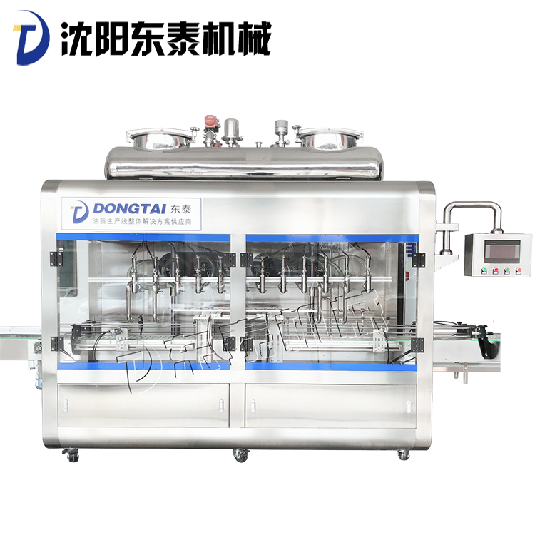3、 該設備在設計上大大縮短了下料斗到灌裝頭的灌裝距離,克服了含油量大的物料(如:含芝麻粒的辣椒油)在灌裝過程中出現的有些瓶油多,有些瓶醬多的灌裝誤差大的缺點。