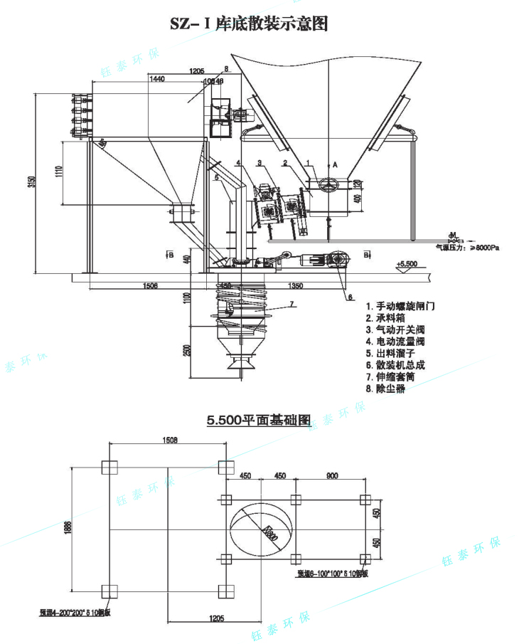 服務(wù)電話:13091153069(同微信) 汽車散裝機(jī)是將庫(kù)內(nèi)的粉料或骨料自動(dòng)無(wú)塵裝車的設(shè)備。汽車散裝機(jī)主要由手動(dòng)棒閥,電動(dòng)扇形閥,卷?yè)P(yáng)裝置,伸縮卸料裝置、收塵軟管,電容式限位開關(guān),電控系統(tǒng)等部分組成。當(dāng)汽車進(jìn)入位置后,打開棒閥相應(yīng)的棒條數(shù)量。按住控制柜的“下降鈕”,下料頭到位后會(huì)自動(dòng)斷開升降電機(jī)電源,按“裝車鈕”進(jìn)入卸料狀態(tài),輔助配套設(shè)備會(huì)相應(yīng)開始工作,卸料產(chǎn)生的灰塵通過進(jìn)料斗,由伸縮收塵軟管進(jìn)入收塵器凈化,當(dāng)下料頭的物料裝滿時(shí),下料頭邊上升,邊報(bào)警,上升距離要在裝料前設(shè)置。若上升距1米,則將時(shí)間繼電器的時(shí)間調(diào)為T=1N。在上升過程中裝料始終在進(jìn)行,當(dāng)下料頭滿時(shí),再重復(fù)上述動(dòng)作,到達(dá)料滿位置后,按停車鈕,使電振機(jī)反制動(dòng),或關(guān)閉扇形閥下料停止工作,其它設(shè)備相應(yīng)停止工作。停車后可按上升按鈕讓下料斗離開物料一定距離,確保運(yùn)輸工具的移動(dòng),再對(duì)準(zhǔn)第二個(gè)卸料工位。直到整個(gè)料倉(cāng)裝滿為止